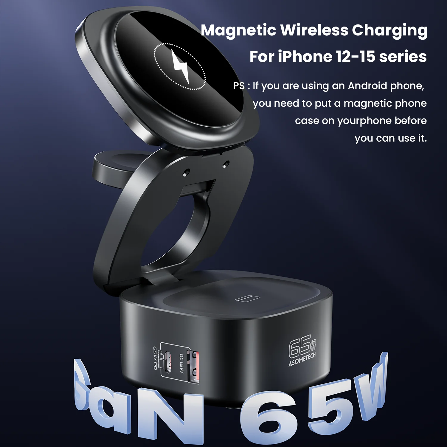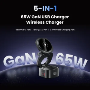 ASOMETECH 65W GaN Fast Magnetic 5 in 1 Foldable Wireless Charger Station